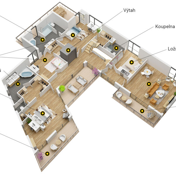 Dispoziční řešení s dostatkem místa pro početnou rodinu s nadstandardním zázemím.